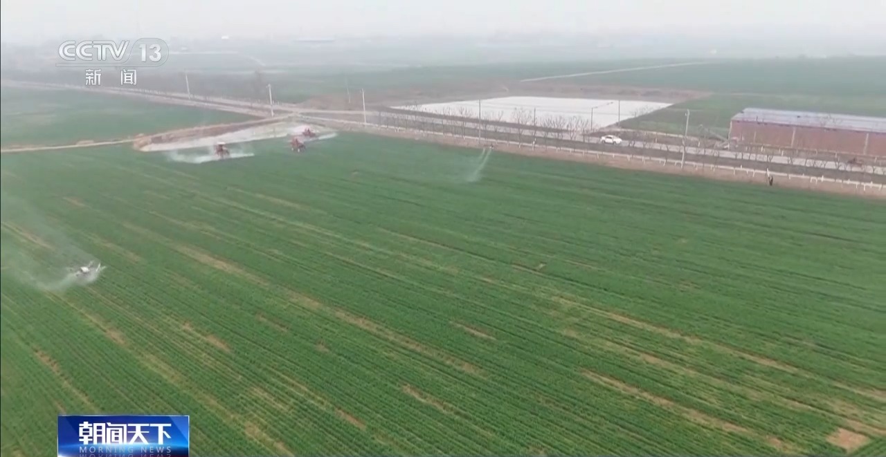在枣阳市七方镇大房村,4台高效节能、操作快捷的植保无人机成为小麦返青拔节期管护的得力助手,而3台自走式喷杆喷雾机则在一旁辅佐完结田间除草作业。