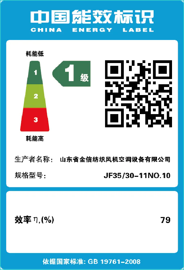 现在,该风机已获国家一级能效标识及节能产品认证,国内商场占有率打破20%。 该系列新产品取得一级能效,并取得我国质量检测中心节能产品认证。