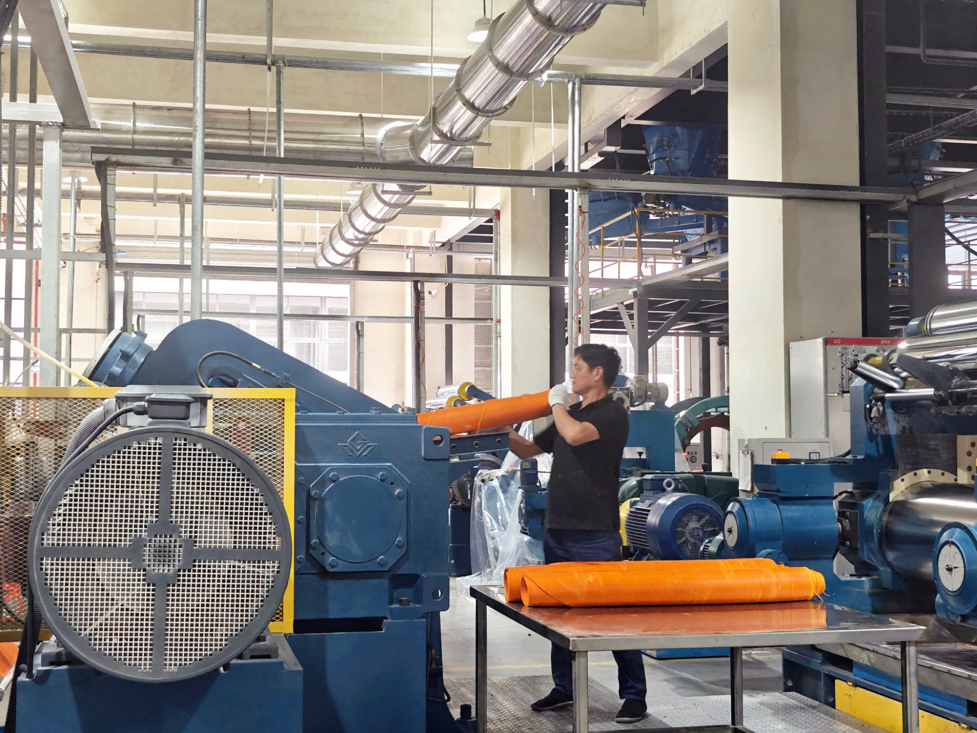 不仅是增加研发投入提升产品竞争力,飞达科技还持续加大技术改造投入,让生产线变得更智能高效。在企业去年刚投产的智能智造基地,改造之后的13条连续硫化生产线,每分钟产出比原来快了10米以上,日均产能接近11万米,比老厂提升了20%。